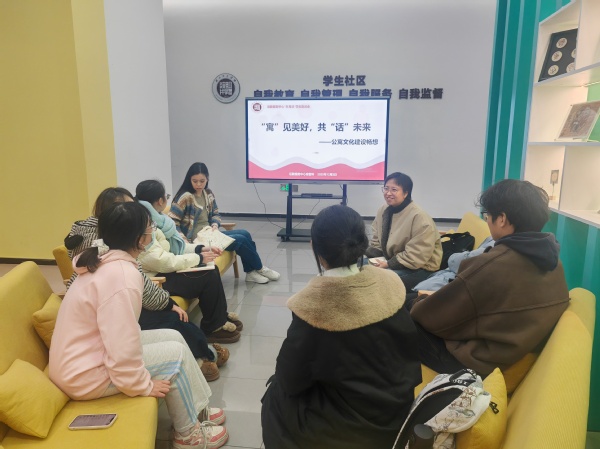 座谈会上,宿管科负责人介绍了公寓区门厅文化建设的阶段性成果和“一站式”学生社区建设规划,希望学生积极建言献策,通过持续提升社区文化“软实力”,推动学生公寓从传统的“管理场所”向多元的“育人高地”实现范式转型。在互动环节中,学生代表畅所欲言,对近年来社区建设带来的环境温馨化、生活气息浓郁化给予了充分肯定,同时也表达了对个性化生活空间及多样化文化活动的进一步期待。