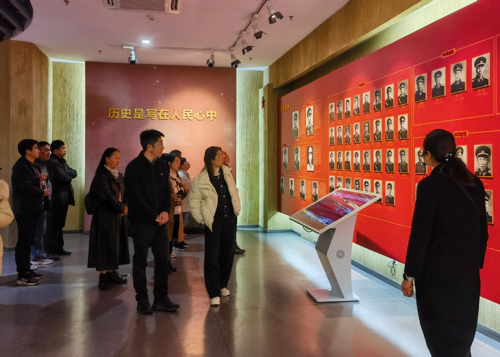纪念馆内,党员们在讲解员的引导下,依次参观了抗日历史陈列馆、新四军将帅馆和廉政文化馆等多个展区。一份份详实的史料、一幅幅珍贵的照片、一件件斑驳的文物,厚重地呈现了新四军驻守太华、团结军民浴血奋战的峥嵘岁月。在“军民鱼水情”专题展板前,汤大娘一家的故事感人至深,党员们驻足凝视,深刻感悟到“铁军”与人民群众同甘共苦、共御外侮的深厚情谊。