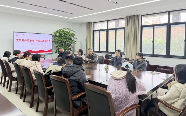 座谈会上,文印服务部负责人首先介绍了部门职能定位、服务范畴与运营概况。在随后的互动环节中,学生代表踊跃发言,就打印服务的效率与便捷性、文创产品的定价与设计、支付方式的多样化、湖师优创的宣传等方面,提出了多项具体、切实的建议。部门人员逐一回应,并就部分可立即优化的环节进行了现场反馈。