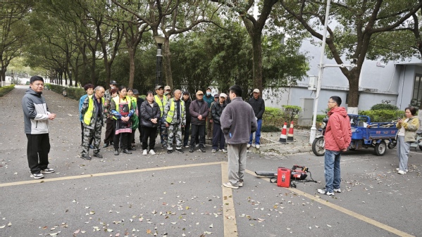 培训现场,管理人员讲解鼓风机清洁设备操作方法、使用技巧以及日常维护要点,并进行实操演示,通过直观示范让参训人员快速掌握规范操作流程。参训人员主动上手尝试操作,亲身体验设备作业效果,现场学习氛围热烈,互动交流高效有序。随后,部门负责人结合实际工作场景,着重强调校园作业安全规范,明确各项安全注意事项,要求全体保洁人员严格遵守操作规程,精准防范各类安全风险。